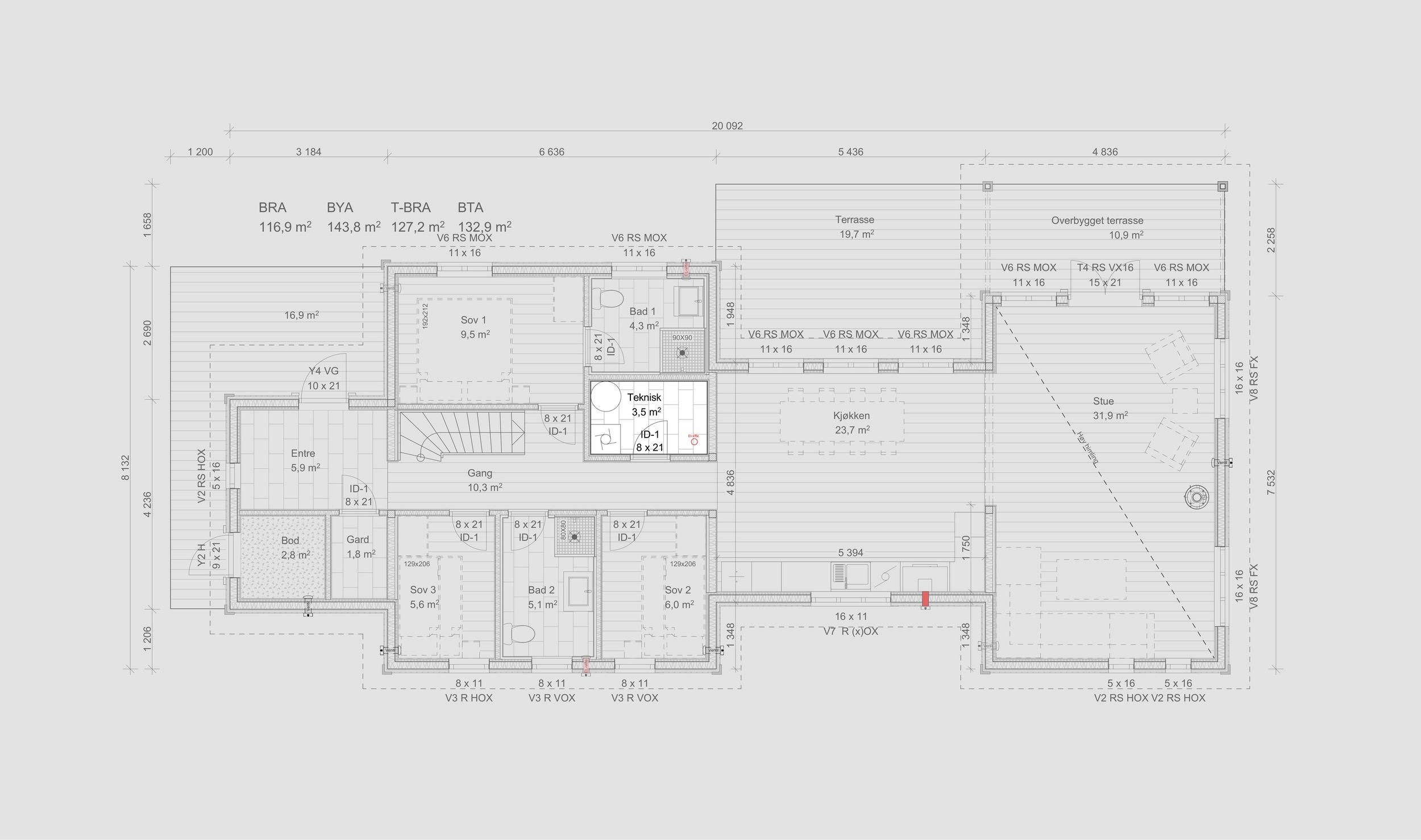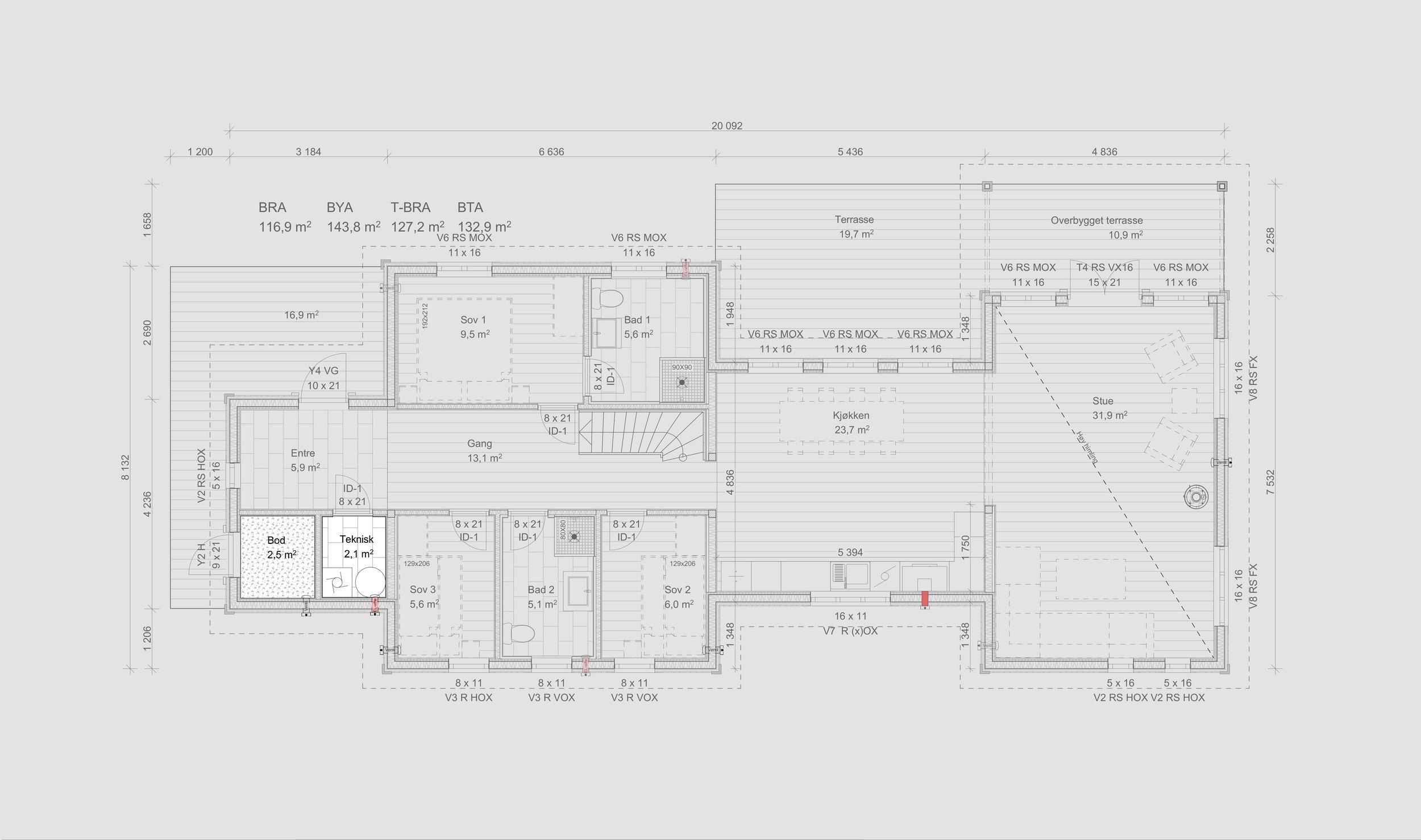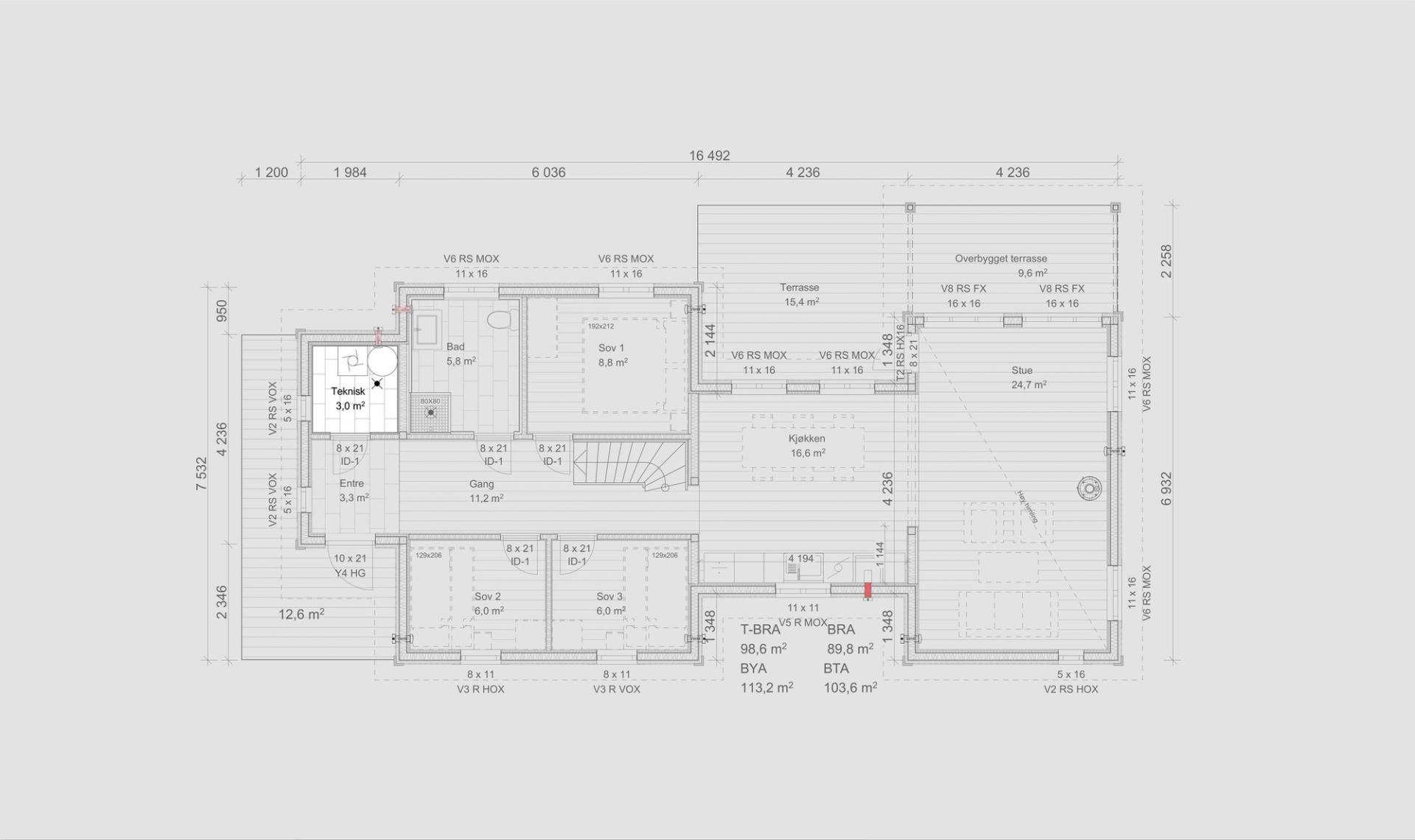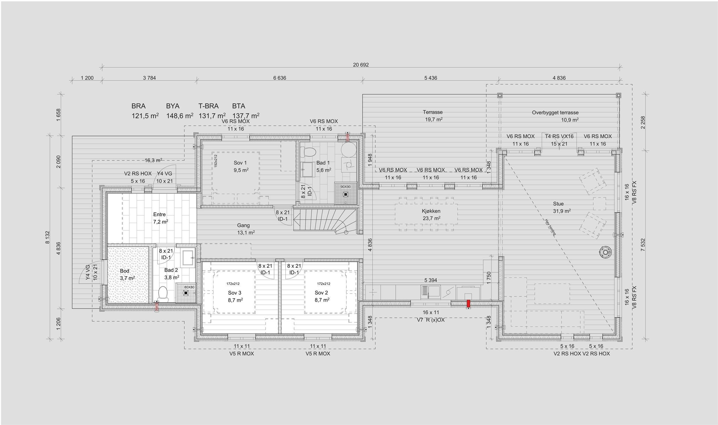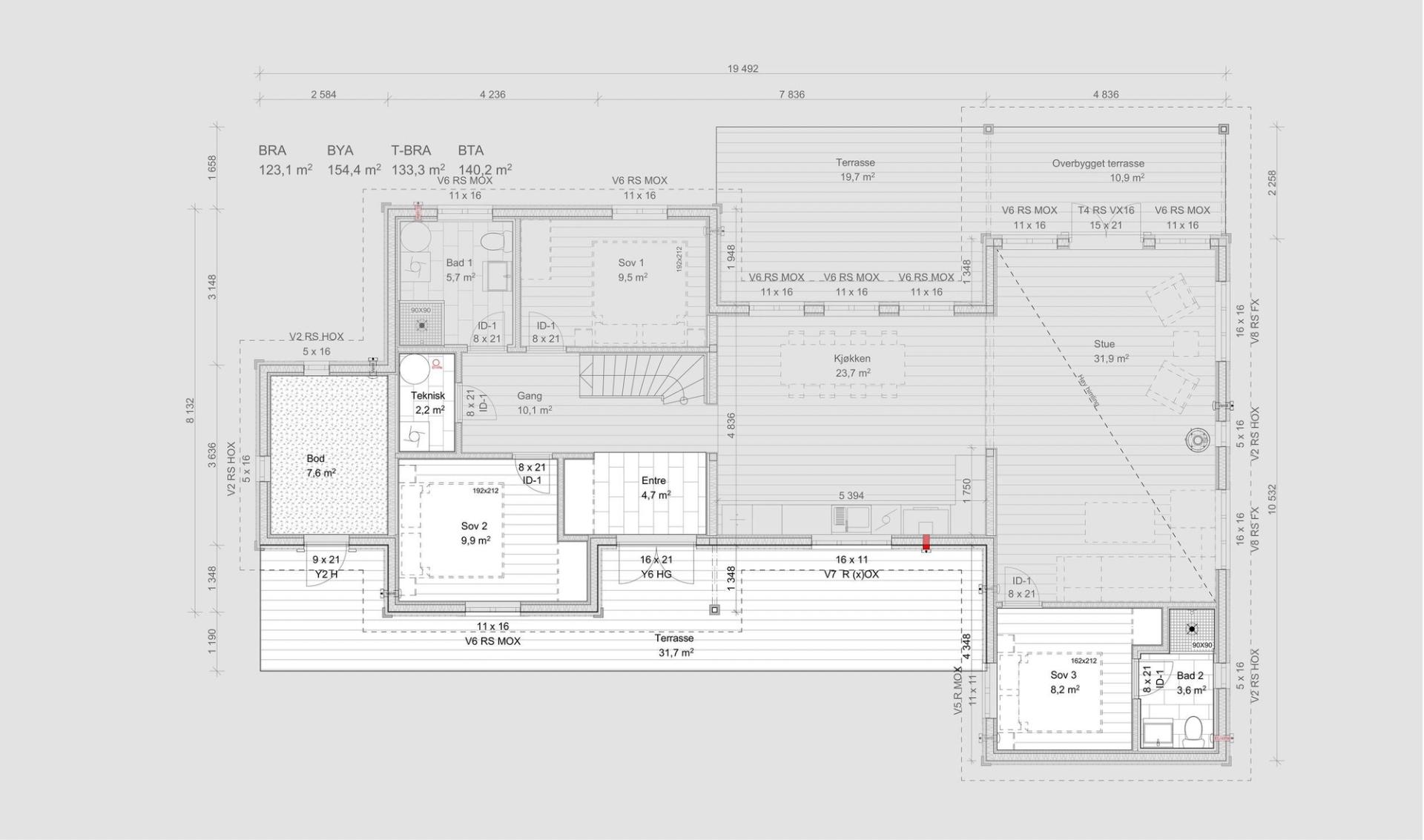 Romslig familiehytte med hems, luftige oppholdsrom og stor terrasse med overbygget del eller panorama vinduer