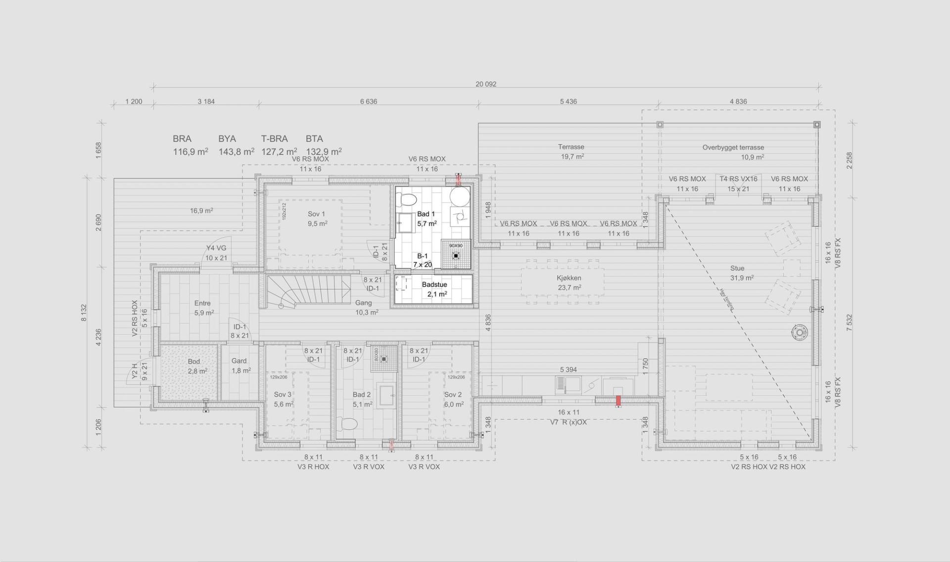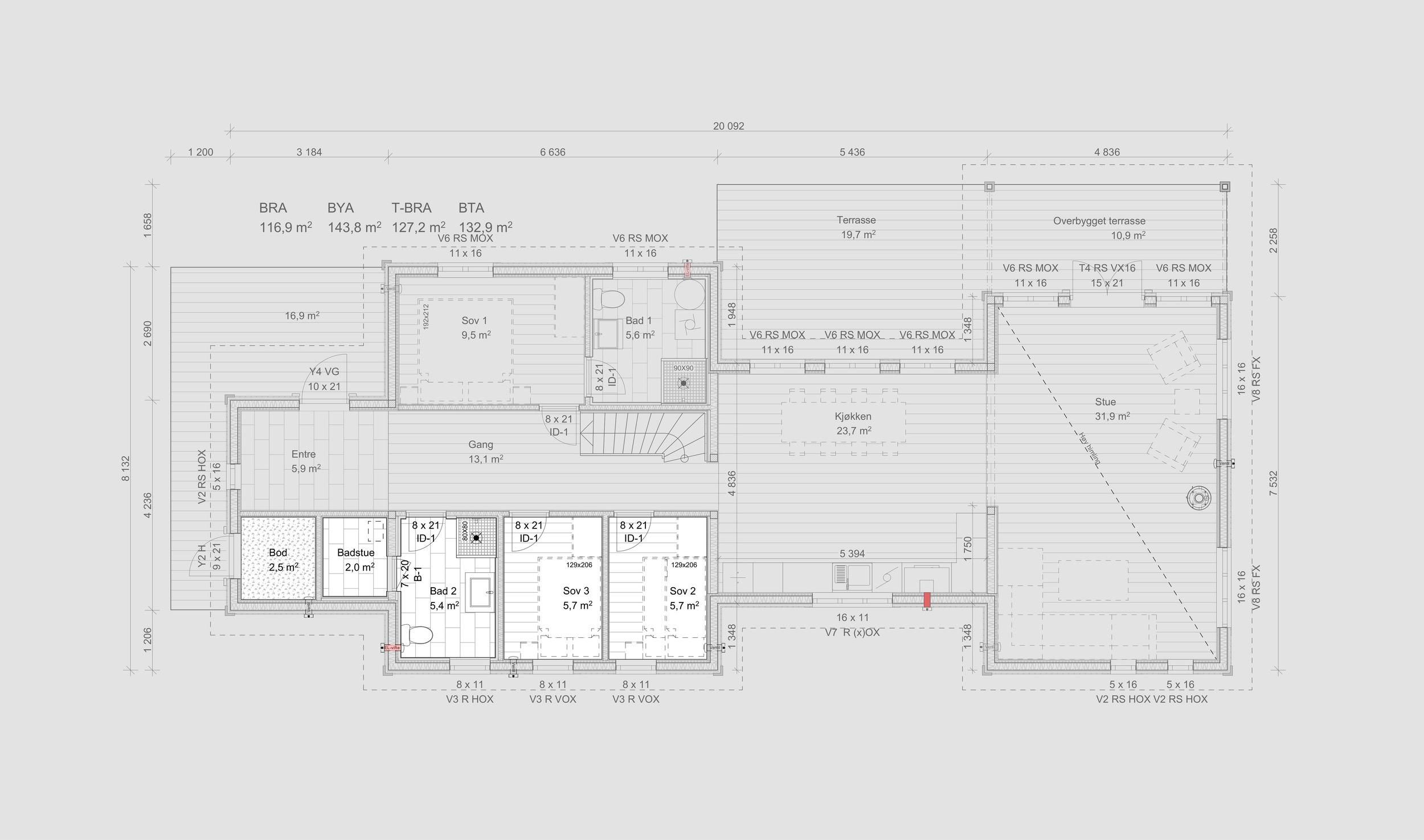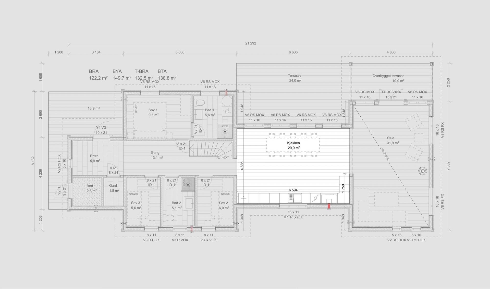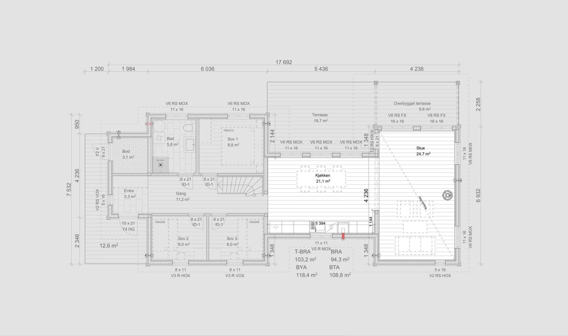 Romslig familiehytte med hems, luftige oppholdsrom og stor terrasse med overbygget del eller panorama vinduer