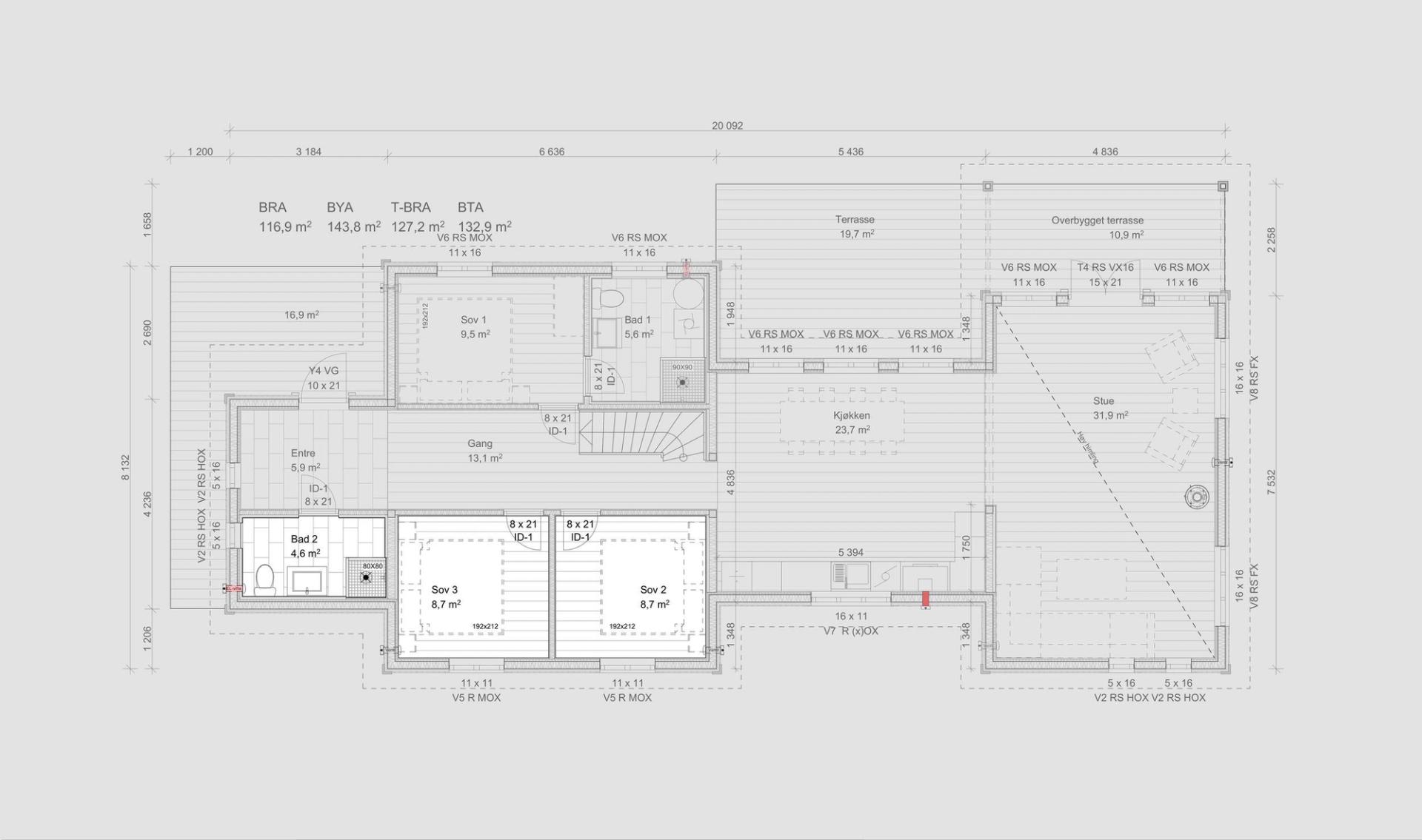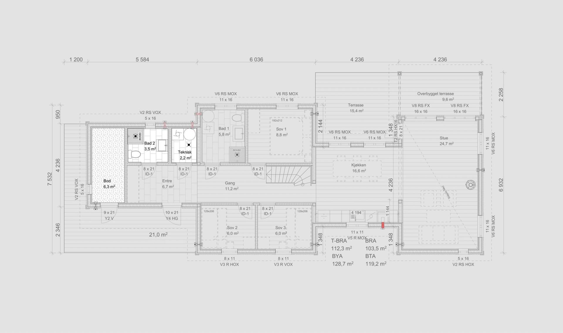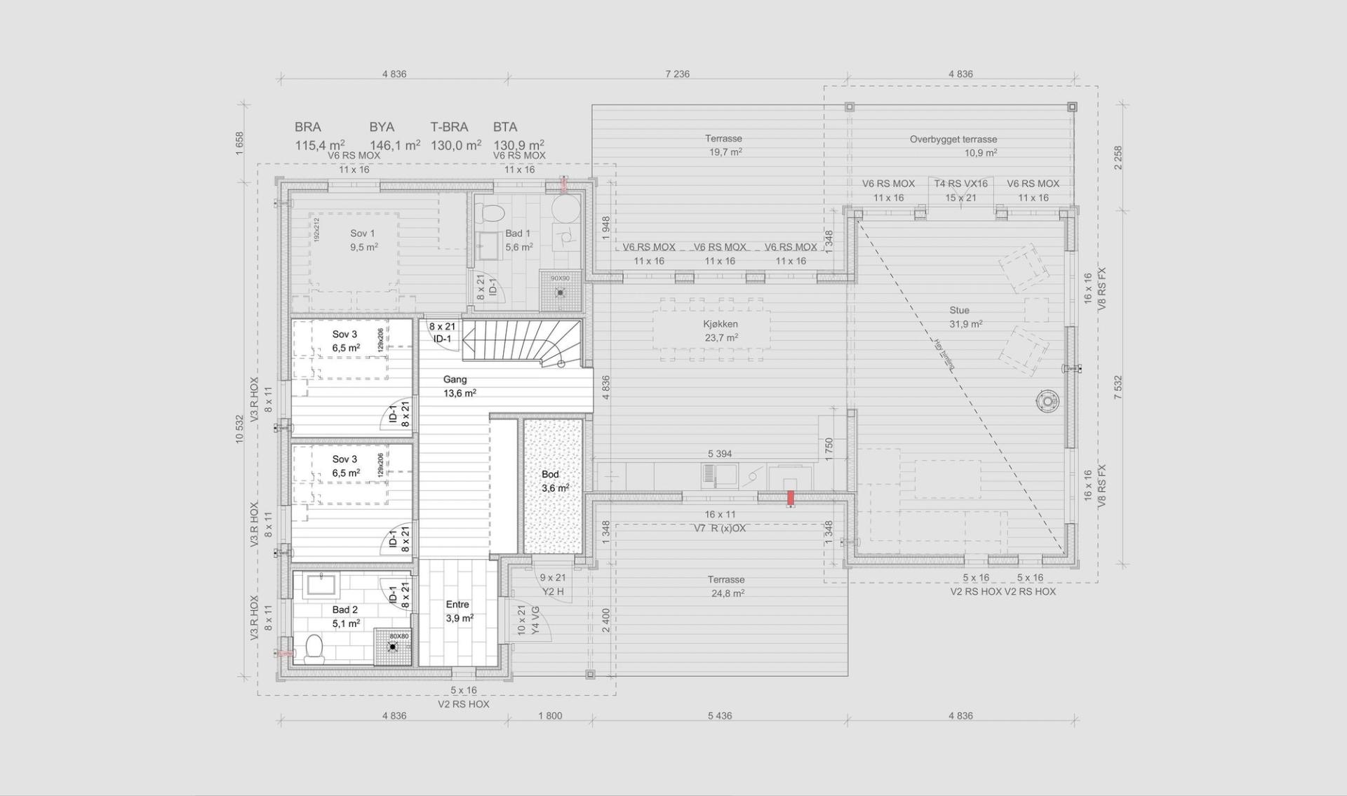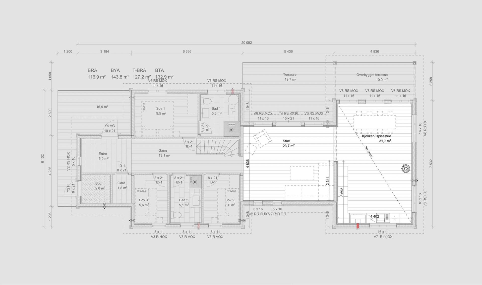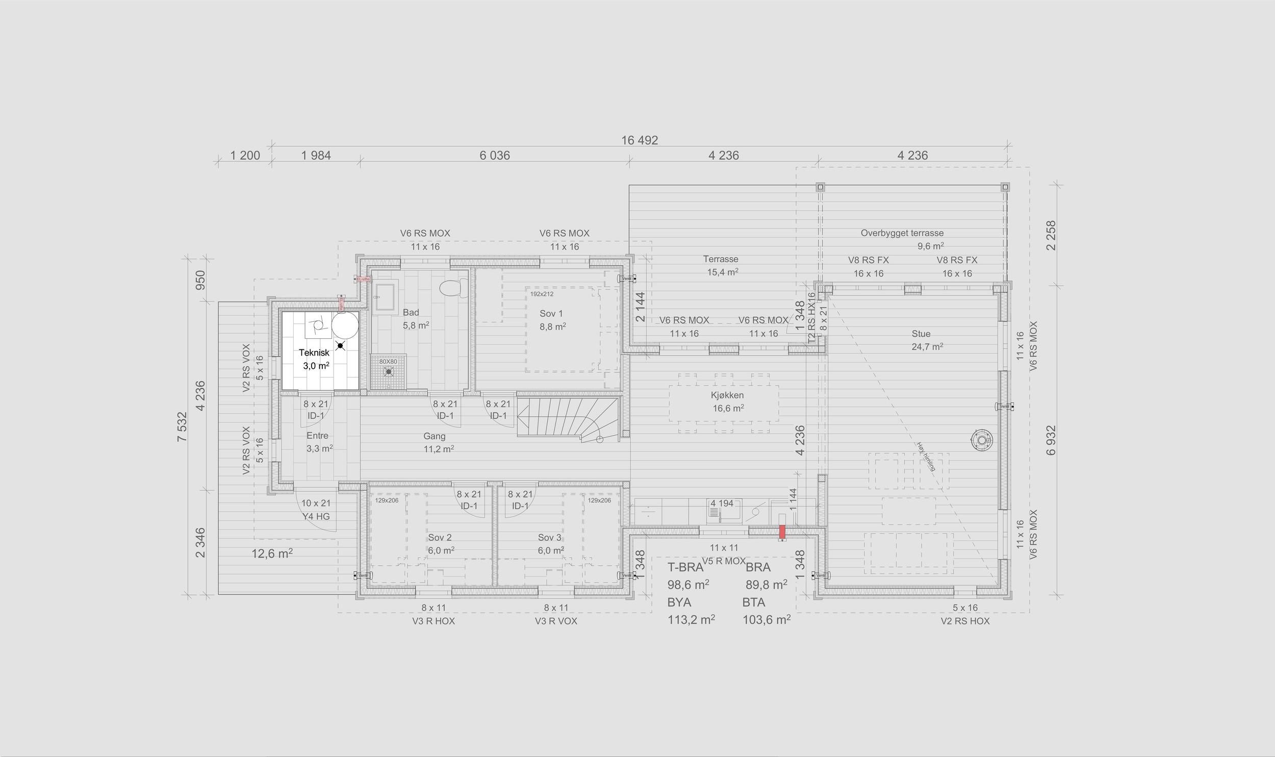 Romslig familiehytte med hems, luftige oppholdsrom og stor terrasse med overbygget del eller panorama vinduer