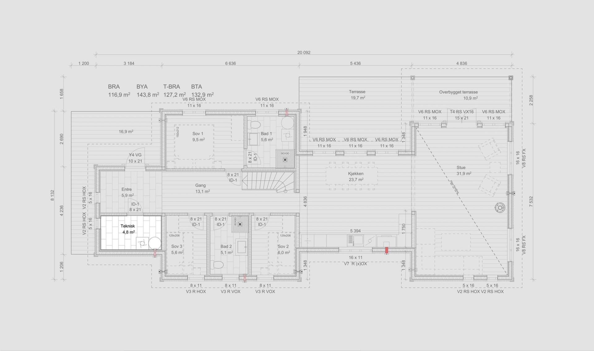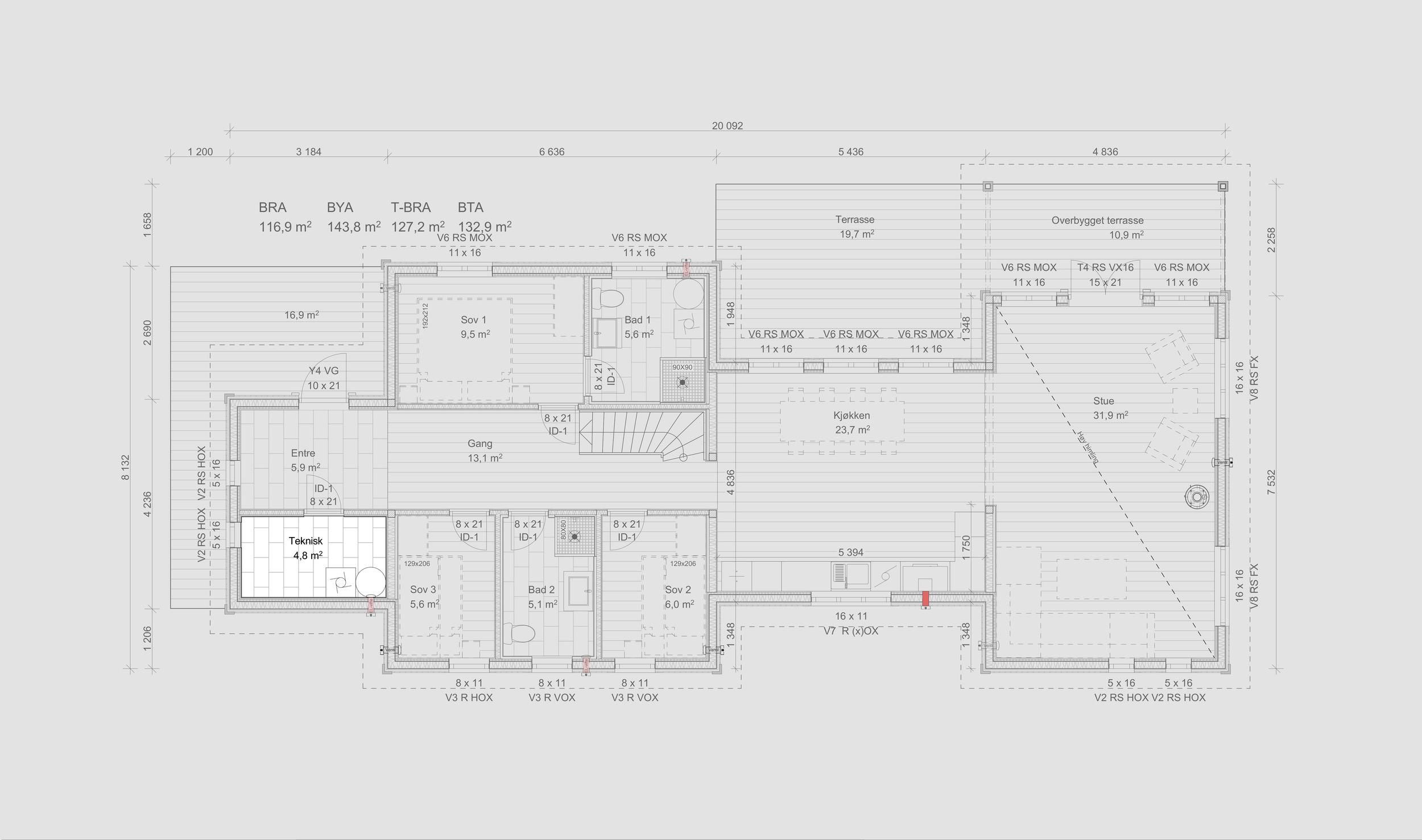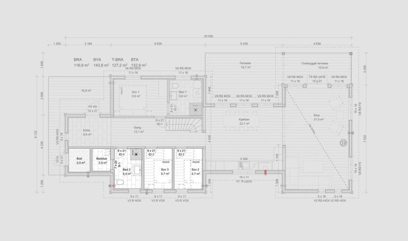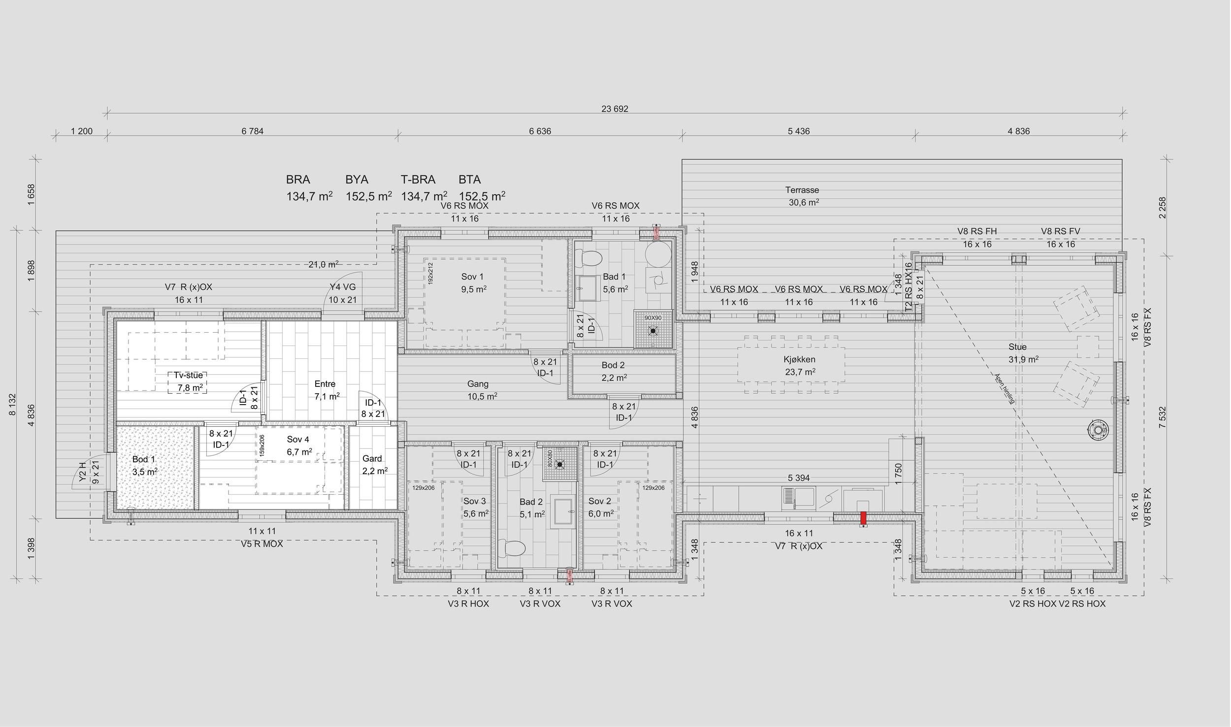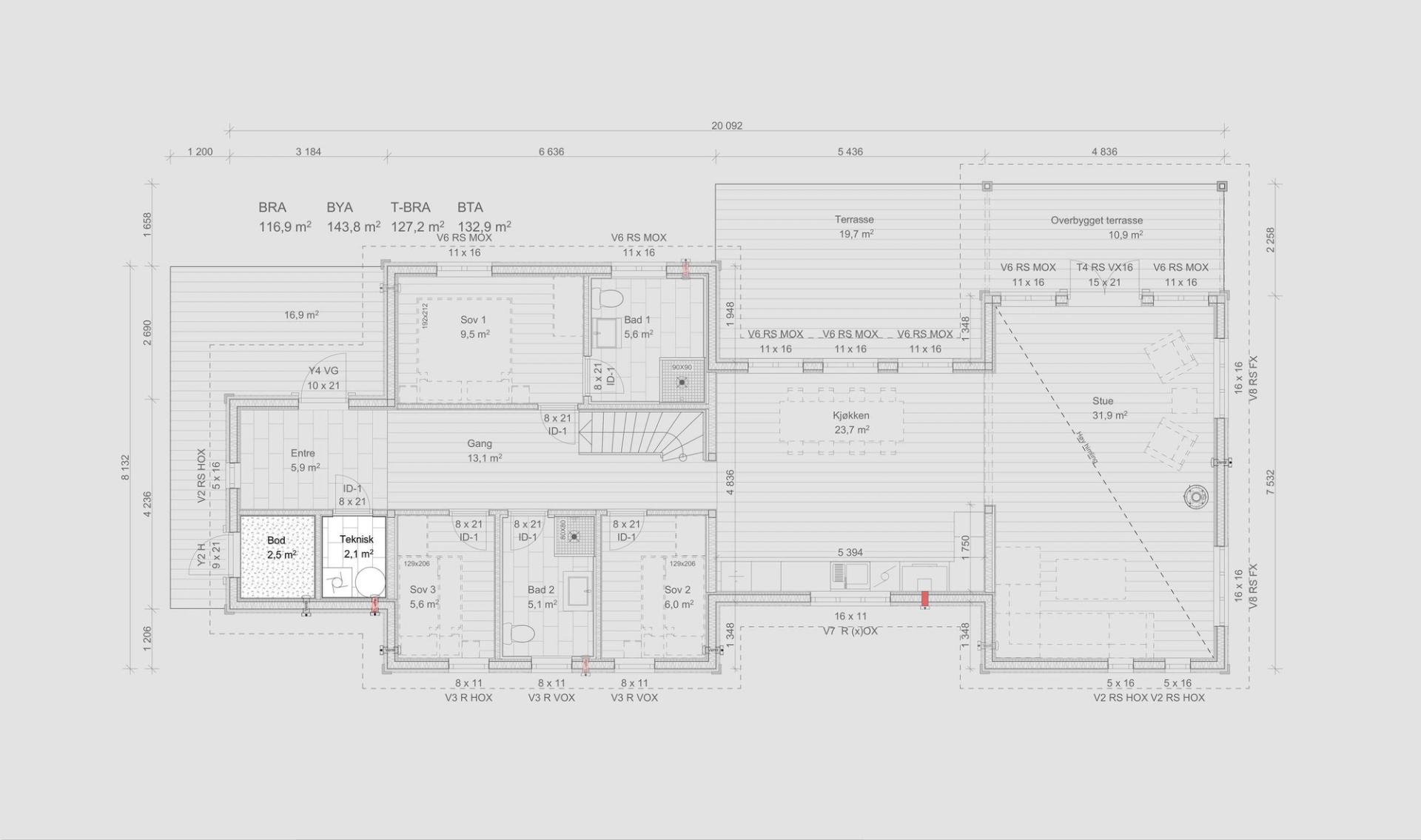 Romslig familiehytte med hems, luftige oppholdsrom og stor terrasse med overbygget del eller panorama vinduer