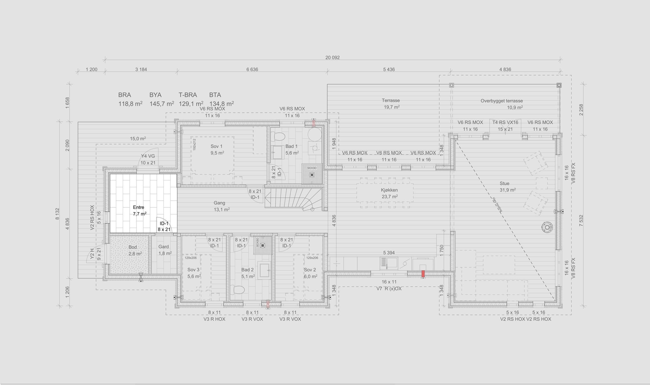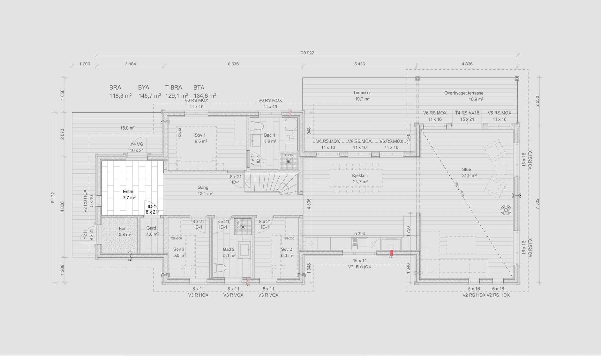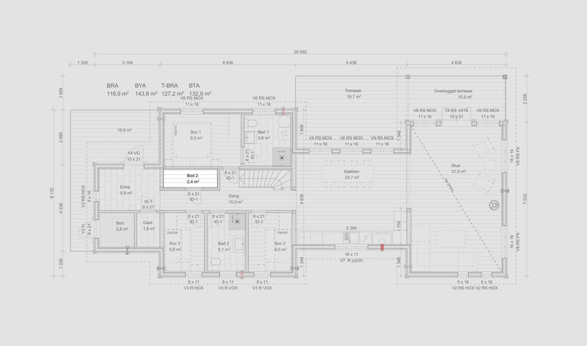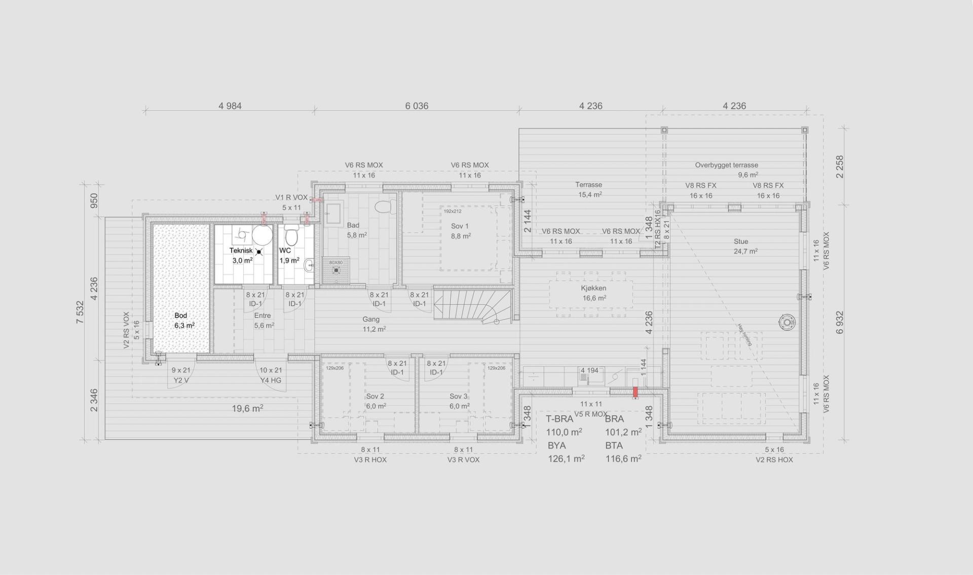 Romslig familiehytte med hems, luftige oppholdsrom og stor terrasse med overbygget del eller panorama vinduer