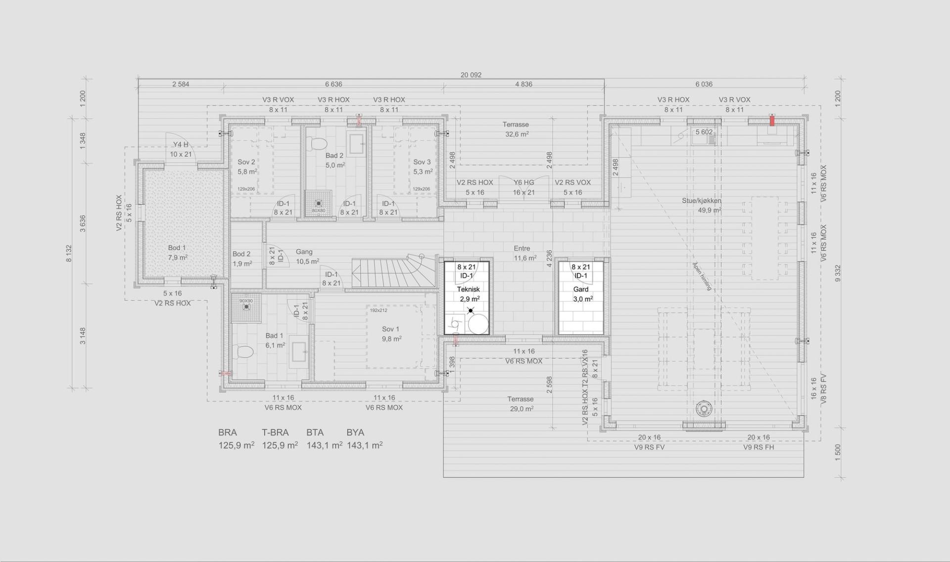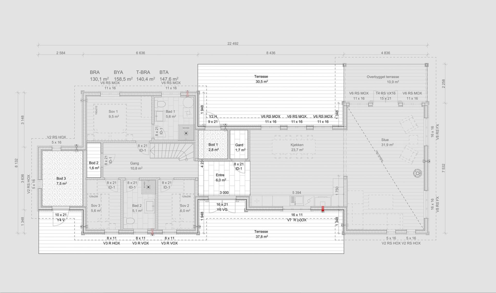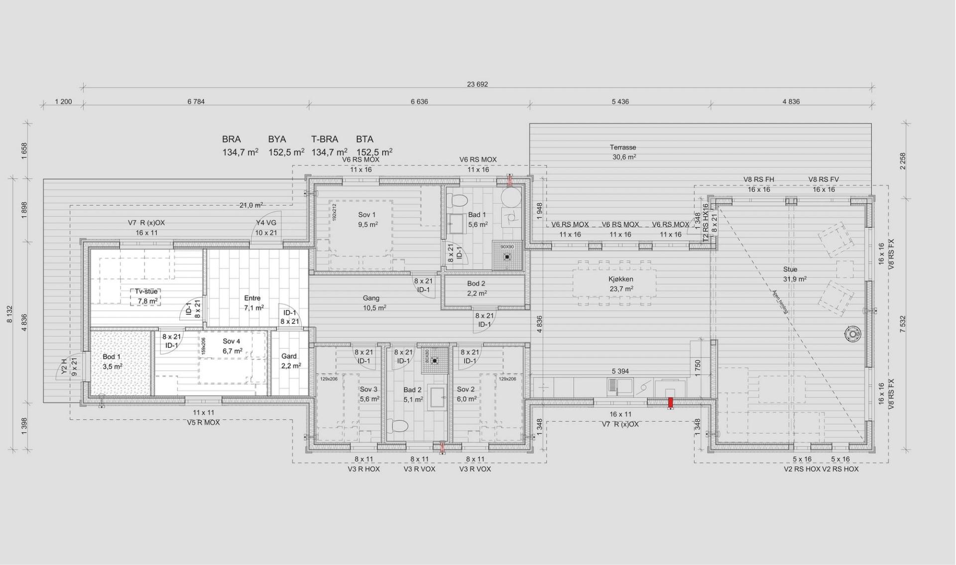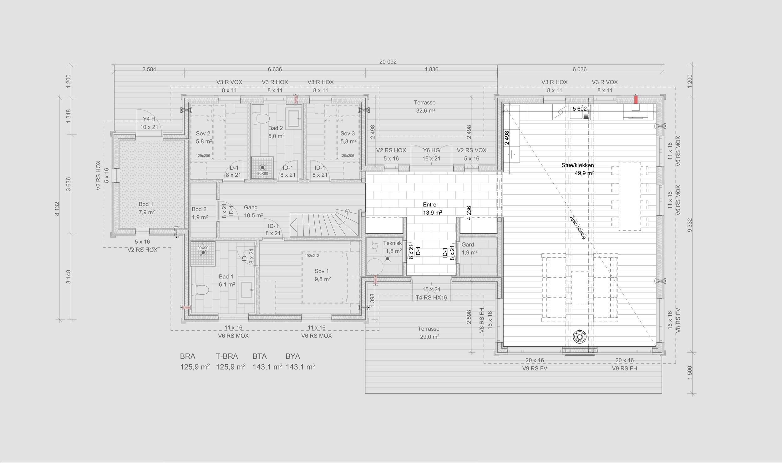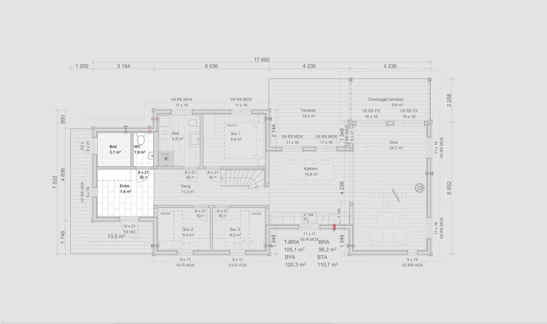 Romslig familiehytte med hems, luftige oppholdsrom og stor terrasse med overbygget del eller panorama vinduer